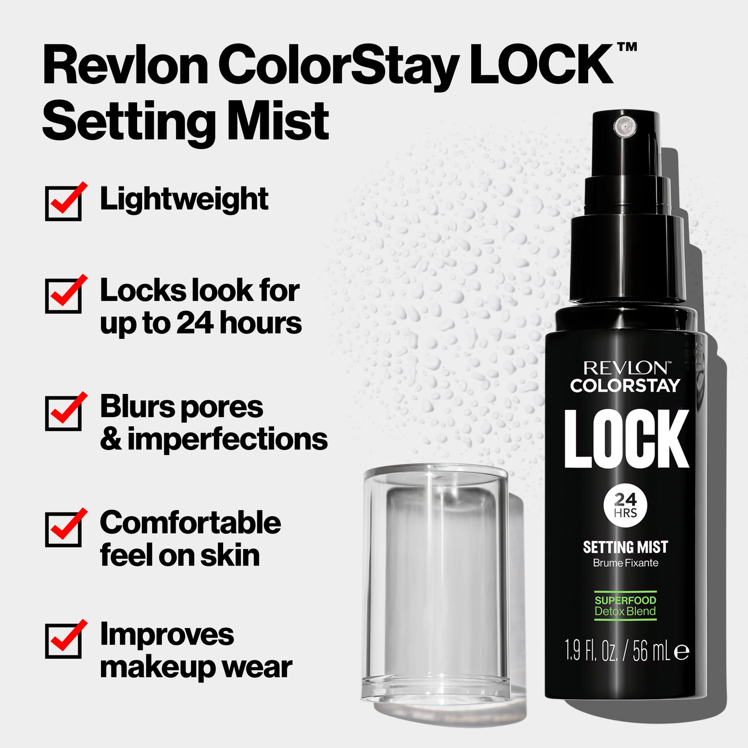 Revlon ColorStay™ Lock Setting Mist is a setting spray that locks your look for up to 24 hours while shielding your skin from daily pollutants. Discover more on the Revlon site.